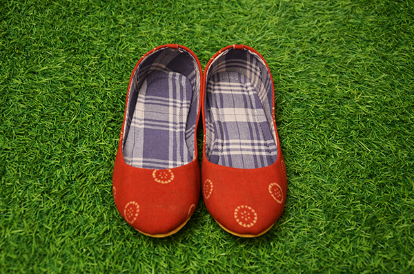 - Handcrafted by masters: The complete process, starting from carving the wooden blocks for printing the fabric; to making the colour that is use to dye the fabric; to curing the colour for its fastness. Cutting and stitching the outer to its lining to cutting the sole; Executing the pasting & finishing process, everything is executed by hand by the artisans who have learned and horned their skills over their entire lifetime. A legacy and knowledge which has been passed on to them by their forefathers.