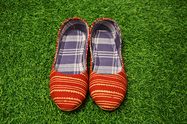 - Handcrafted by masters: The complete process, starting from carving the wooden blocks for printing the fabric; to making the colour that is use to dye the fabric; to curing the colour for its fastness. Cutting and stitching the outer to its lining to cutting the sole; Executing the pasting & finishing process, everything is executed by hand by the artisans who have learned and horned their skills over their entire lifetime. A legacy and knowledge which has been passed on to them by their forefathers.